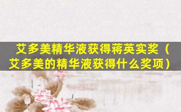 艾多美精华液获得蒋英实奖的消息可能是一个特定事件或荣誉的报道。蒋英实奖可能是某个领域或行业内的一个奖项,用于表彰在该领域内做出杰出贡献的个人或产品。由于信息有限,我无法提供更多关于这个奖项的详细背景或艾多美精华液的具体信息。