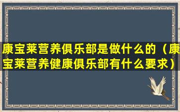 5. 提供专业服务:康宝莱营养健康俱乐部通常提供营养咨询、体重管理计划和健康饮品等服务,因此你可能需要具备一定的营养学知识和客户服务技能。