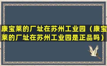 康宝莱(Herbalife)是一家全球知名的营养品公司,其产品包括营养补充品、体重管理产品等。康宝莱在中国设有生产基地,其中包括位于苏州工业园区的工厂。苏州工业园区是中国的一个重要的经济技术开发区,吸引了众多国内外企业在此设立生产基地。