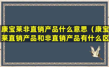 当提到“康宝莱非直销产品”时,这可能意味着以下几种情况: