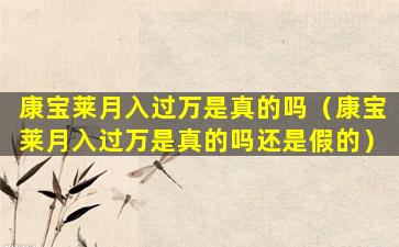 关于“康宝莱月入过万”的说法,这通常是指参与康宝莱直销业务的人员通过销售康宝莱产品以及招募下线获得的收入。康宝莱是一家全球知名的营养品公司,其业务模式包括直销,即通过个人销售代表直接向消费者销售产品。