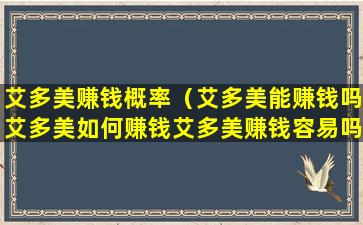 3. 艾多美赚钱容易吗?