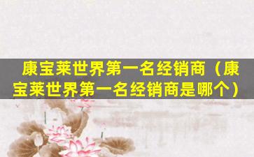 康宝莱(Herbalife)是一家全球知名的营养品公司,其业务模式包括直销,因此有许多经销商。关于“世界第一名经销商”的说法,这通常是基于个人的销售业绩、团队规模或者其他公司认可的成就。这样的信息通常不会被公开详细记录,除非是公司内部或者在特定的直销行业活动中。