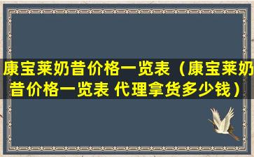 由于我无法提供实时的价格信息,建议您直接访问康宝莱的官方网站或联系当地的康宝莱经销商获取最准确的价格和代理信息。