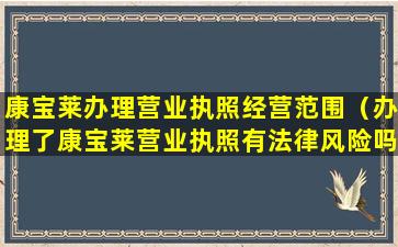 在中国,办理营业执照是企业合法经营的前提,只要按照国家法律法规和相关政策办理,是不会有法律风险的。康宝莱作为一家国际知名的营养品公司,在中国开展业务也需要遵守中国的法律法规。