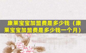 关于“康莱宝宝”加盟费的问题,由于我无法访问最新的数据,我无法提供确切的数字。加盟费用通常会根据品牌、地区、店铺规模等因素有所不同。如果您想了解“康莱宝宝”的加盟费用,建议您直接联系“康莱宝宝”的官方或授权代理,获取最准确的加盟信息。