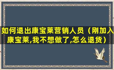 如果您刚刚加入康宝莱(Herbalife)并且决定不想继续,您可能有权根据康宝莱的退货政策进行退货。康宝莱通常为其分销商提供一定的退货期限,以便他们可以退回未开封的产品和一些特定条件下的已开封产品。