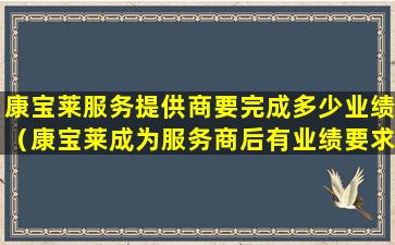 具体的业绩要求会因公司政策和地区法规的不同而有所差异。因此,如果您考虑成为康宝莱的服务商,建议直接咨询康宝莱公司或查阅相关的合同条款和政策文件,以获取最准确的信息。