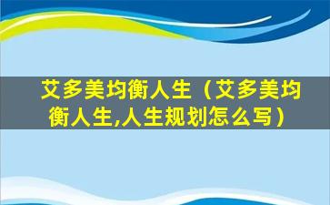 如果"艾多美均衡人生"是指某个特定的产品、服务或品牌,那么可能需要更多的上下文信息来确定其具体含义。例如,它可能是一个健康产品品牌,强调通过其产品帮助人们实现生活的平衡。