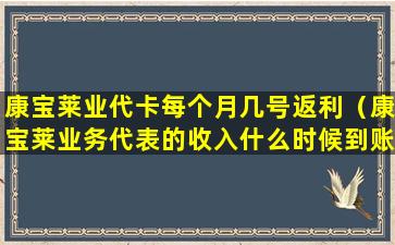 康宝莱(Herbalife)是一家全球知名的营养品公司,其业务模式包括直销,即通过独立分销商(也称为业务代表或业代)销售产品。关于“业代卡每个月几号返利”的问题,这通常取决于康宝莱公司的具体政策和业代与公司之间的协议。