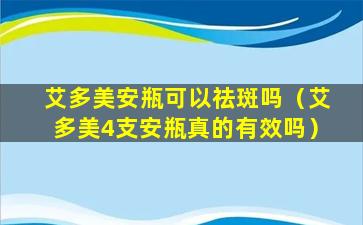 艾多美安瓶是一种美容产品,通常含有多种营养成分,旨在改善肌肤状况。关于祛斑,很多美容产品都声称具有这样的效果,但是否真的有效,以及效果如何,很大程度上取决于个人的肤质、斑点的类型和原因,以及产品的成分和使用方法。