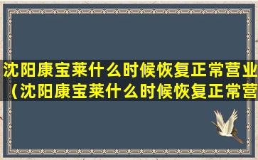 截至我的知识更新日期(2023年),关于沈阳康宝莱恢复营业的具体时间,我无法提供实时信息。康宝莱(Herbalife)是一家全球知名的营养品公司,其营业状态可能会受到多种因素的影响,包括但不限于当地政策、疫情控制措施、公司内部调整等。