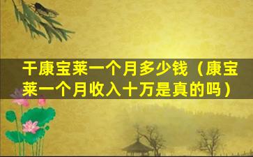 康宝莱(Herbalife)是一家全球性的营养品公司,其产品包括体重管理、营养补充和个人护理产品。康宝莱的销售模式包括直销,即通过独立分销商销售产品。关于“干康宝莱一个月多少钱”的问题,这里可能存在一些误解,因为“干康宝莱”并不是一个标准的表达方式。