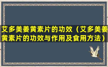 艾多美姜黄素片是一种含有姜黄素(Curcumin)的保健品,姜黄素是从姜黄(Curcuma longa)这种植物中提取的一种活性成分。姜黄素因其抗氧化、抗炎和抗菌等特性而被广泛研究。以下是姜黄素可能的一些功效作用: