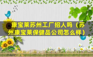 康宝莱(Herbalife)是一家全球知名的营养品公司,其在中国设有多个生产基地和分支机构。如果您想了解康宝莱苏州工厂是否正在招聘,建议您直接访问康宝莱中国的官方网站或者联系当地的人力资源部门获取最新的招聘信息。