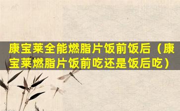康宝莱(Herbalife)是一家全球性的营养品公司,提供各种营养补充品、体重管理和个人护理产品。关于“康宝莱全能燃脂片”是否应该在饭前还是饭后服用,这通常取决于产品说明书或医生的建议。
