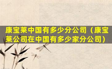 截至我的知识更新日期(2023年),康宝莱(Herbalife Nutrition)是一家全球知名的营养品公司,其业务遍布全球多个国家和地区。在中国,康宝莱也设有分公司和销售网络。