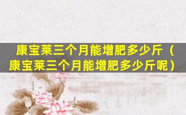 康宝莱(Herbalife)是一家提供营养补充品和体重管理产品的公司。关于“康宝莱三个月能增肥多少斤”的问题,实际上并没有一个固定的答案,因为增肥的效果会因人而异,受到多种因素的影响,包括个人的新陈代谢率、饮食习惯、生活方式、遗传因素以及使用的具体产品等。