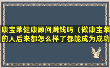 关于“康宝莱健康顾问赚钱吗”的问题,答案取决于多种因素: