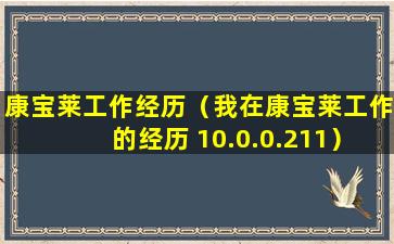 您提到的“我在康宝莱工作的经历 10.0.0.211”似乎是一个特定的信息或者是一个错误的表述。如果您是在寻求关于康宝莱(Herbalife)公司的信息,我可以提供一些基本的信息。