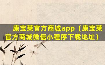截至我的知识更新日期(2023年),康宝莱(Herbalife Nutrition)是一家全球知名的营养品公司,提供各种营养补充品、体重管理和个人护理产品。康宝莱通常通过其独立分销商网络销售产品,而不是通过官方商城app。