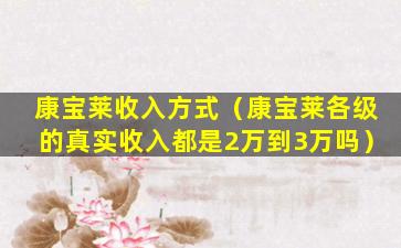 如果你对康宝莱的收入情况感兴趣,建议直接咨询康宝莱公司或其官方分销商,以获取最准确和官方的信息。同时,对于任何投资或加入多层次营销计划的决定,都应该进行充分的研究和考虑,包括了解相关的风险和潜在的回报。