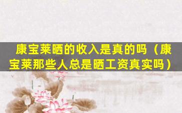 关于“康宝莱晒的收入是否真实”,这个问题需要从几个角度来看: