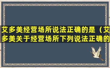 艾多美(Amway)是一家全球知名的直销公司,其经营场所的相关规定通常会遵循当地的法律法规以及公司的内部政策。以下是一些关于艾多美经营场所的正确说法: