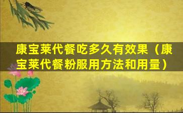 关于“康宝莱代餐吃多久有效果”,这个问题的答案因人而异,因为效果取决于多种因素,包括个人的新陈代谢、饮食习惯、生活方式、身体状况以及是否结合了适当的运动等。以下是一些可能影响效果的因素: