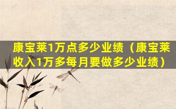 由于康宝莱的具体佣金比例和奖励政策可能会随时间和地区的不同而有所变化,因此无法提供一个具体的业绩数字来对应每月1万元的收入。通常,销售代表需要根据自己的佣金比例和产品成本来计算达到特定收入所需的业绩。