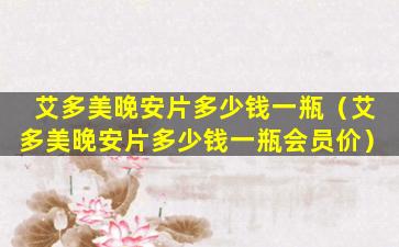 关于“艾多美晚安片”的价格,我无法提供确切的信息,因为这取决于多种因素,包括购买地点、销售渠道、促销活动等。药品的价格也可能随时间而变化。