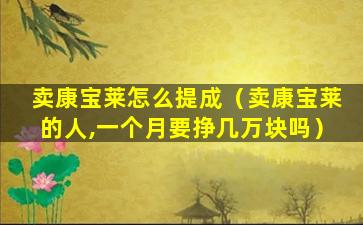 关于“卖康宝莱的人一个月要挣几万块”的问题,这取决于多种因素,包括但不限于: