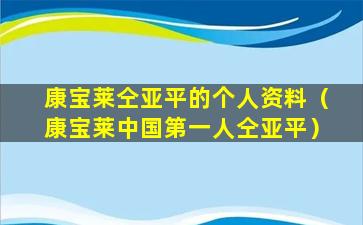 关于“康宝莱中国第一人仝亚平”,这个说法可能是指仝亚平是中国康宝莱公司中的一位重要人物,可能是指他在康宝莱中国市场的开拓、销售或者领导方面做出了显著贡献。由于信息有限,无法提供更多关于仝亚平的具体信息。