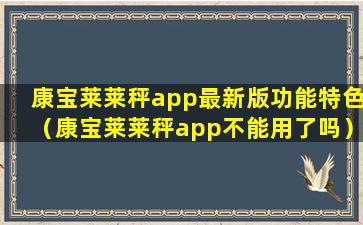 截至我的知识更新日期(2023年),康宝莱(Herbalife)是一家全球知名的营养品公司,提供各种健康和体重管理产品。康宝莱莱秤app(Herbalife Nutrition Scale App)可能是该公司推出的一款与体重秤配套使用的移动应用程序,用于帮助用户跟踪和管理他们的体重和健康数据。