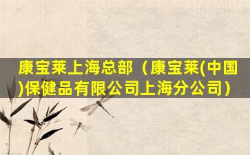 如果您需要联系康宝莱上海总部,建议访问康宝莱中国的官方网站或通过其客服热线获取相关信息。