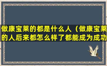 康宝莱(Herbalife)是一家全球性的营养品公司,以直销模式销售其产品。加入康宝莱的人通常会通过销售产品和招募新成员来赚取收入。关于“做康宝莱的人后来都怎么样了”以及“都能成为成功人吗”的问题,答案并不是一概而论的,因为每个人的经历和结果都有很大差异。