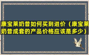康宝莱(Herbalife)是一家全球知名的营养品公司,其产品包括了多种营养奶昔。如果您想要以进价购买康宝莱奶昔,通常需要成为康宝莱的独立分销商或会员。以下是一些可能的途径: