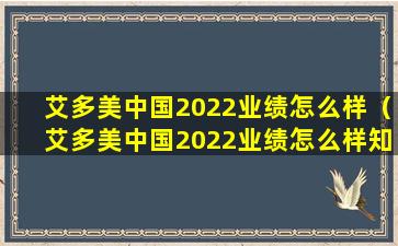 如果您想了解艾多美中国2022年的业绩情况,建议您访问艾多美中国的官方网站或关注其官方发布的财务报告。您也可以在知乎等社交平台上搜索相关讨论,但请注意,社交平台上的信息可能不够权威,应以官方发布的信息为准。