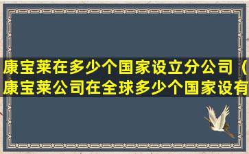 截至我所知的信息,康宝莱在全球多个国家和地区设有分公司和业务。具体的国家和地区数量可能会随着时间的推移而变化,因此最准确的信息应该直接从康宝莱的官方网站或最新的公司公告中获取。通常,康宝莱会在其年度报告或投资者关系页面提供有关其全球业务范围的详细信息。
