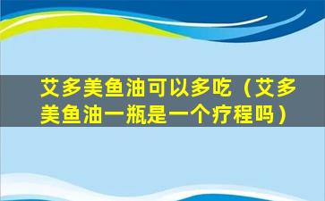 艾多美鱼油是一种常见的保健品,它含有Omega-3脂肪酸,对人体健康有益。关于“一瓶是一个疗程”的说法,并没有统一的标准。通常,保健品的疗程长度会根据产品的推荐剂量、使用目的以及个人的健康状况等因素来确定。