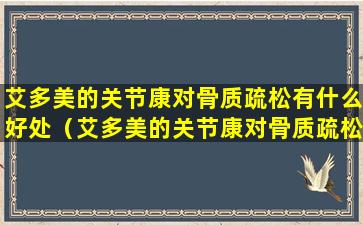 艾多美(Aidome)的关节康是一种可能含有多种成分的保健品,旨在帮助维护关节健康。关于其对骨质疏松的好处和坏处,需要根据产品具体的成分和科学研究来评估。
