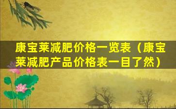 关于康宝莱(Herbalife)产品的价格,我无法提供具体的一览表和图片,因为这些信息可能会随时间和地区的不同而变化。康宝莱是一家全球知名的营养品公司,提供多种营养补充品和减肥产品。如果您想了解康宝莱产品的具体价格,建议直接访问康宝莱的官方网站或联系当地的康宝莱经销商获取最新信息。
