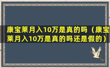 如果你看到声称通过康宝莱一个月可以赚取十万的说法,这可能是基于个别成功案例,并不代表普遍情况。在做出任何决定之前,建议你获取详细信息,并考虑咨询已经参与该业务的人员,以获得更准确的收入预期。同时,也要警惕可能存在的夸大宣传或不实信息。
