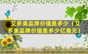 截至我的知识更新日期(2023年),关于“艾多美”品牌价值的确切数据并不明确,因为“艾多美”可能指的是多个不同的品牌或公司,且品牌价值通常需要通过专业的品牌评估机构进行评估。如果“艾多美”是一个特定的品牌,其价值可能会随着市场状况、公司业绩、品牌影响力等因素的变化而变化。