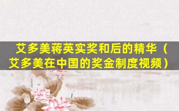 您提到的“艾多美蒋英实奖”和“后的精华”似乎是两个不同的概念,但它们之间可能存在某种联系。下面我将分别解释这两个概念: