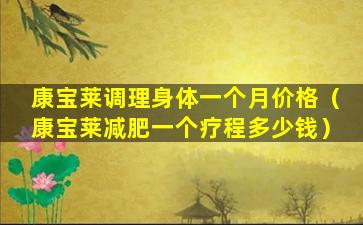 如果您想了解康宝莱调理身体一个月的价格,您需要考虑以下几个因素: