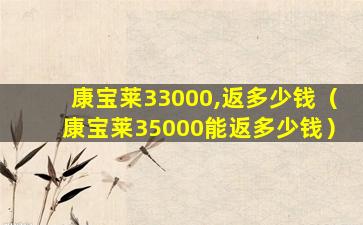 康宝莱(Herbalife)是一家全球知名的营养品公司,提供各种健康和体重管理产品。关于“康宝莱33000返多少钱”的问题,这可能指的是康宝莱的某个促销活动或者会员奖励计划。由于康宝莱的促销活动和奖励计划可能会根据地区、时间以及具体活动内容而有所不同,因此无法提供一个具体的返款金额。
