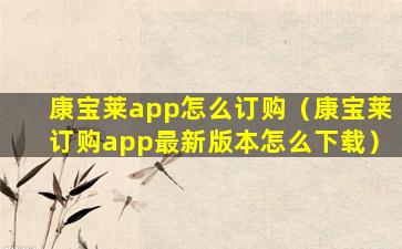 很抱歉,我无法提供具体的应用程序下载链接或指导如何下载特定公司的应用程序,如康宝莱订购app。如果您想下载康宝莱的相关应用程序,请按照以下步骤操作: