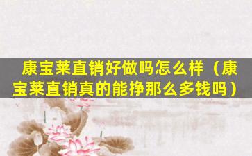 康宝莱(Herbalife)是一家国际性的营养品公司,以直销模式销售其产品。直销模式允许个人通过销售产品以及招募其他销售人员来赚取收入。关于“做康宝莱直销是否真的可以赚钱”,这个问题的答案取决于多种因素: