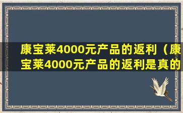 关于“康宝莱4000元产品的返利”,如果这种返利是基于发展下线或者销售业绩来计算的,那么它可能涉嫌传销。消费者和公众应该保持警惕,避免参与任何可能涉嫌传销的活动。